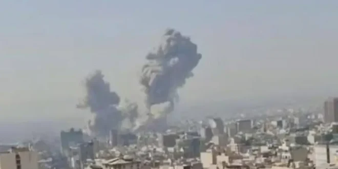 وسط طهران وتصاعد دخان كثيف قرب المجمع الحكومي في منطقة باستور، مع تقارير عن