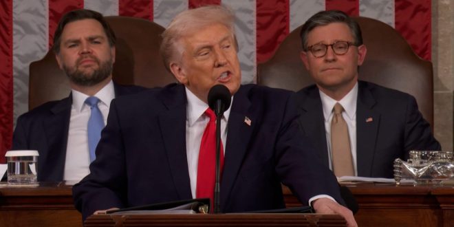 ألقى الرئيس الأمريكي دونالد ترامب أطول خطاب حالة اتحاد في تاريخ الولايات المتحدة، حيث امتد لساعة و47 دقيقة، مُركزًا على ما اعتبره إنجازات اقتصادية ومهاجمًا سياسات الديمقراطيين.قدّم ترامب صورة متفائلة للاقتصاد الأمريكي، تحدث فيها عن انخفاض التضخم وارتفاع الدخول وازدهار غير مسبوق، رغم أن هذه التصريحات تتعارض مع بيانات اقتصادية واستطلاعات رأي تشير إلى واقع مختلف.