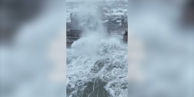 يُظهر فيديو التقطته طائرة بدون طيار أمواجًا هائلة تضرب المنازل في سيتوات بولاية ماساتشوستس الأمريكية، حيث جلبت عاصفة شتوية الثلوج والفيضانات على طول المدينة الساحلية.