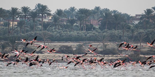 مصور يوثق مشاهد حالمة لطيور الفلامنجو في بحيرة قارون بمصر
