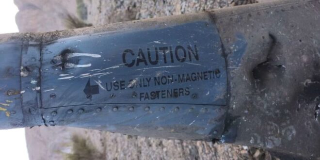 كما تُظهر قطعة أخرى من الحطام – تحمل عبارة "تحذير: استخدم فقط مثبتات غير مغناطيسية" – ما يبدو أنه جزء خلفي من طائرة إف-15 يمتد بين أحد محركيها ومثبتها الأفقي.