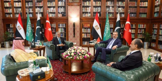 — أعلنت باكستان استعدادها لاستضافة وتيسير محادثات بين الولايات المتحدة وإيران "خلال الأيام القادمة"، عقب اجتماع رباعي عُقد في العاصمة الباكستانية، ضم وزراء خارجية السعودية وتركيا ومصر، وركز على خفض التصعيد وإنهاء الحرب في الشرق الأوسط.
